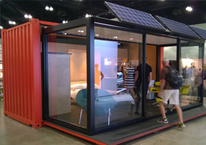 Использование морских контейнеров одинакового размера, остекленных с фасада «от пола до потолка», является сегодня самой быстрой технологией возведения выставочных павильонов, комбинированных роллетных рядов, тематических площадок в крупных торговых центрах.