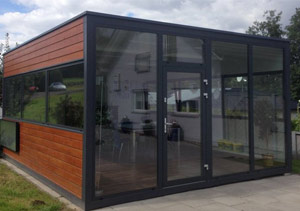 Морские контейнеры, представляющие собой модули, готовые к установке практически на любой грунт, а также – к архитектурным преобразованиям по индивидуальному проекту, преображаются после установки алюминиевых окон и входных групп.