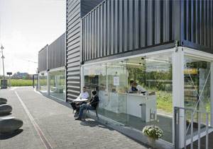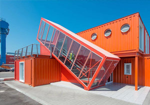 За счет легкости светопрозрачная конструкция не утяжелит сооружение, будь то стеклянный фасад дома в несколько уровней контейнеров, либо опоясывающая одноярусное строение длинная стеклянная галерея.